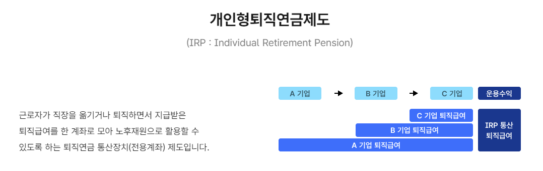 개인형(IRP)은 퇴직금과 달리 근로자가 직접 운용하고 관리할 수 있는 형태의 연금이에요. 이 제도는 근로자가 이직하거나 퇴직할 때 받은 퇴직금을 노후에 대비해 적절하게 운용할 수 있는 기회를 제공해줘요.