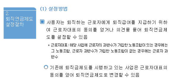 퇴직연금제도는 사업주가 근로자 대표와 협의하여 시작할 수 있습니다. 시작하기 위해서는, 사업주와 근로자 대표가 함께 퇴직연금에 관한 규약을 만들어야 합니다.