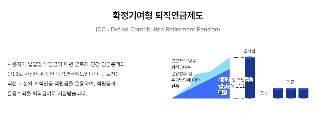 따라서 안정성을 중시하는 근로자는 DB형을, 적극적인 운용으로 수익을 기대하는 근로자는 DC형을 선택하는 것이 좋아요.