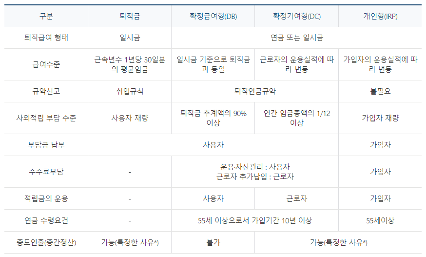 퇴직금과 퇴직연금의 차이점